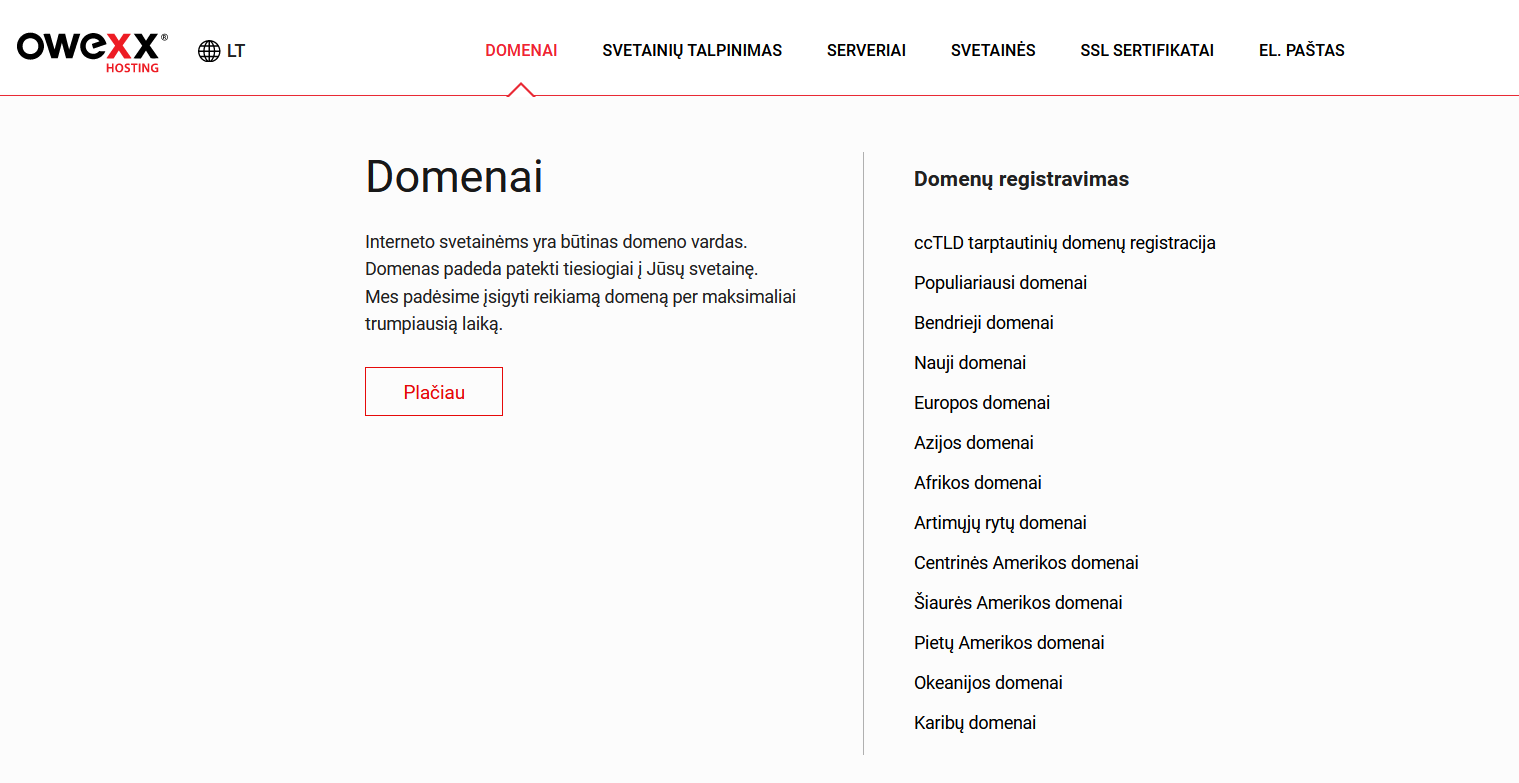 Vadovas, kaip užsisakyti .LT domeną per owexxhosting.lt