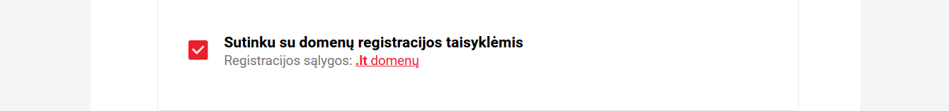 Nepamirškite pažymėti, kad sutinkate su domenų registracijos taisyklėmis.